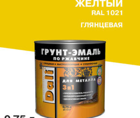 Первоначальная цена составляла 2412 ₽.2330 ₽Текущая цена: 2330 ₽.штГрунт-эмаль по ржавчине 3в1 Dali желтая RAL 1021 глянцевая 0,75 л