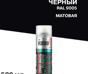 Первоначальная цена составляла 342 ₽.330 ₽Текущая цена: 330 ₽.штГрунт-эмаль аэрозольная для пластика Kudo черная матовая RAL 9005 520 мл