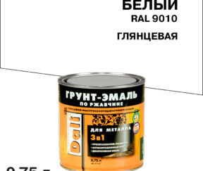 Первоначальная цена составляла 20265 ₽.19580 ₽Текущая цена: 19580 ₽.шт.Грунт-эмаль по ржавчине 3в1 Dali белая RAL 9010 глянцевая 0,75 л