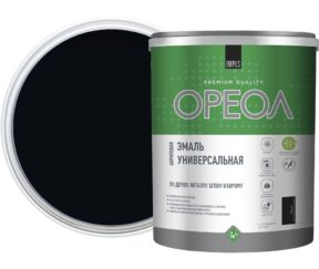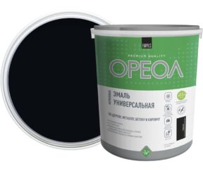 Первоначальная цена составляла 851 ₽.822 ₽Текущая цена: 822 ₽.шт.Эмаль универсальная акриловая Ореол черная глянцевая 2,5 кг