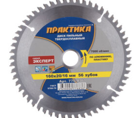 Диск пильный по алюминию Практика 160х16/20х1,8 мм 56 зубьев (776-836)