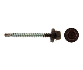 Первоначальная цена составляла 668 ₽.649 ₽Текущая цена: 649 ₽.упак.Саморезы кровельные с буром 70х4,8 мм металл-дерево коричневые RAL 8017 Daxmer (100 шт.)