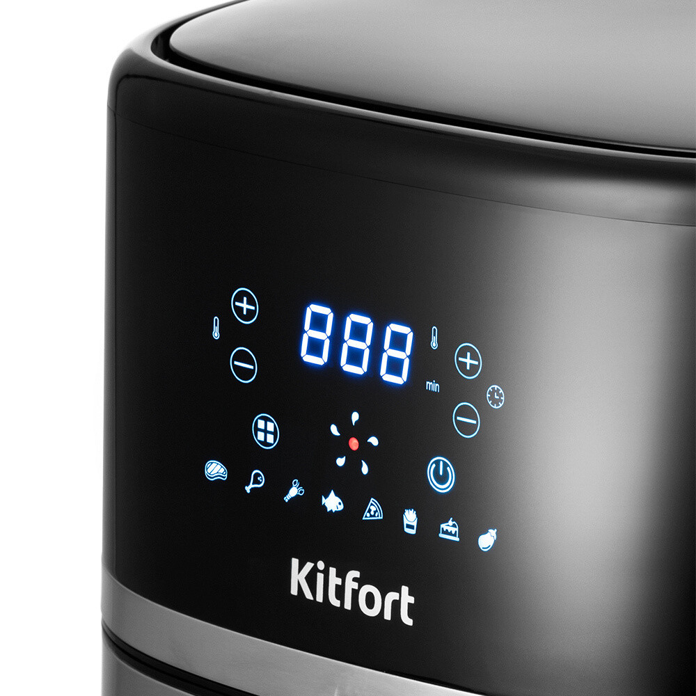 Аэрогриль Kitfort КТ-2221 может использоваться как аэрогриль, а также как аэрофритюрница и духовка и позволяет готовить большинство продуктов с минимальным количеством масла или вовсе без его добавления. Аэрогриль сочетает в себе стильный дизайн и продуманный функционал. Он обладает мощностью 1500 Вт, благодаря чему приготовление не займет много времени. Вместительная корзина на 3,3 л. Многофункциональная панель управления. Аэрогриль имеет 9 автоматических программ, остается только выбрать одну из них: стейк, курица, пицца, выпечка, картофель фри, морепродукты, рыба или овощи. Также возможно задать вручную нагрев от 80°C до 200°C и время приготовления от 1 до 60 минут. Продукты готовятся в специальной корзине, которая вставлена в поддон. Благодаря системе циркуляции горячего воздуха, продукты обжариваются равномерно со всех сторон, получ…
