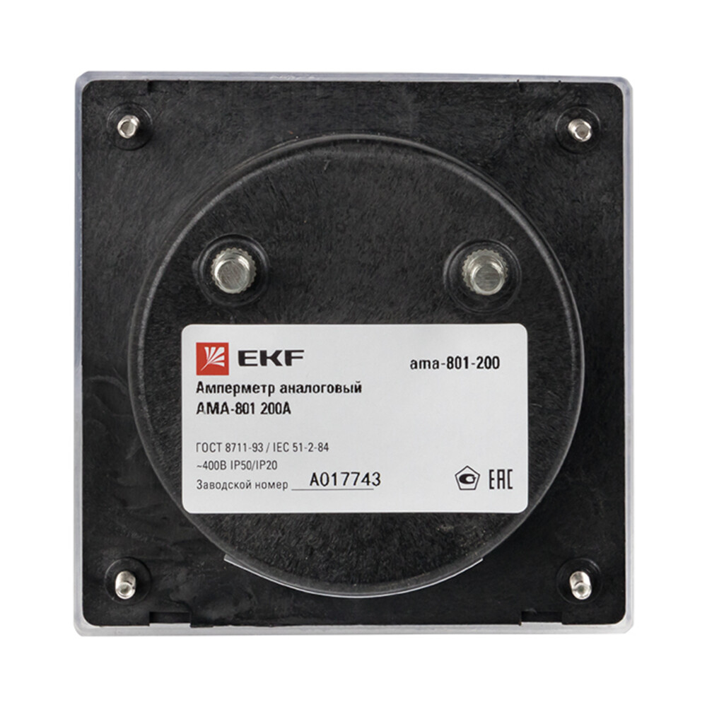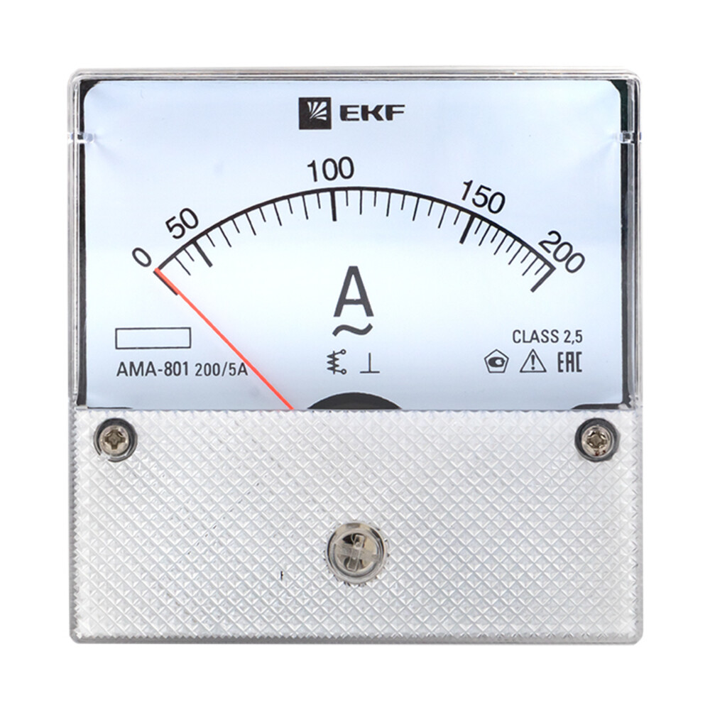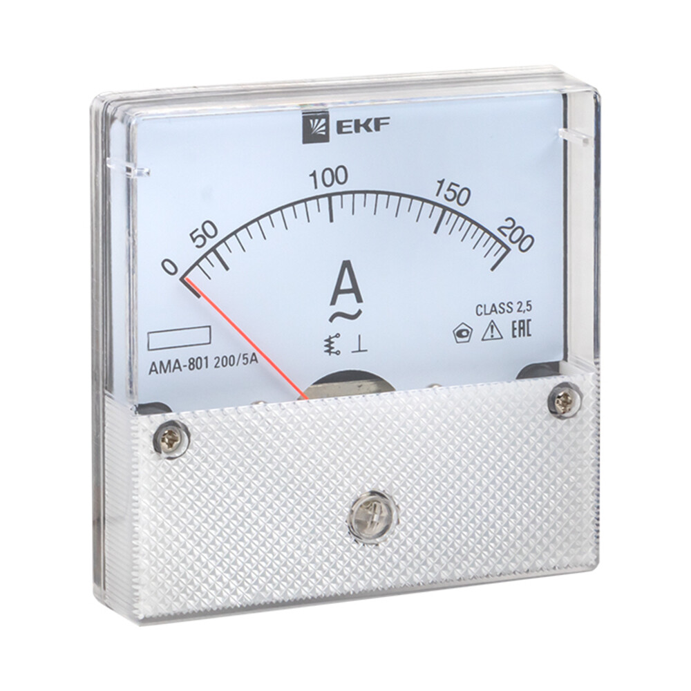 Амперметр аналоговый EKF PROxima AMA-801 80х80 мм IP20 200 А трансформаторное подключение на 5 модулей (ama-801-200)