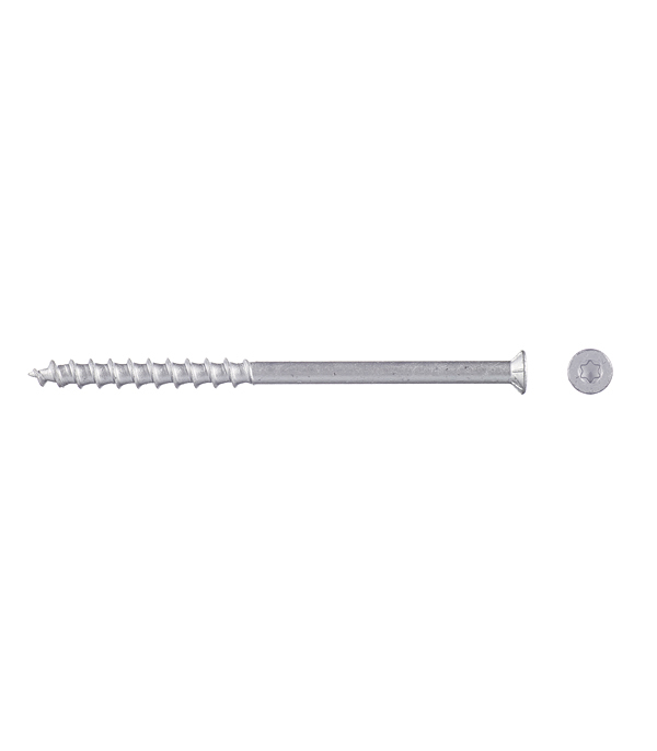 Небольшие выступы на потайной головке облегчают вкручивание в дерево и предотвращают перетягивание. Шуруп имеет нано покрытие, которое позволяет использовать его на улице, в морской и индустриальной среде, а также в других в других условиях, классифицированных по категории коррозионной стойкости C4.