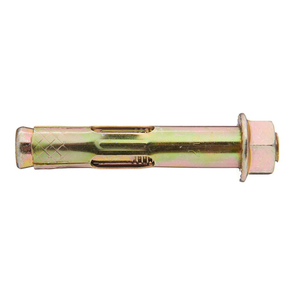 Оцинкованное покрытие обеспечит защиту от коррозии. Анкерный болт с гайкой (втулочный анкер) оснащен фиксирующей гильзой, длина которой равна размерам стального стержня. На хвостовой части шпильки выполнена клинообразная головка. При завинчивании гайки она смещается по резьбовой части. В результате перемещения происходит распирание втулки. Конструктивные особенности такого вида крепежа позволяют использовать его в легких видах бетонов с ячеистой структурой, а также в кирпиче, изготовленном из обожженной глины.