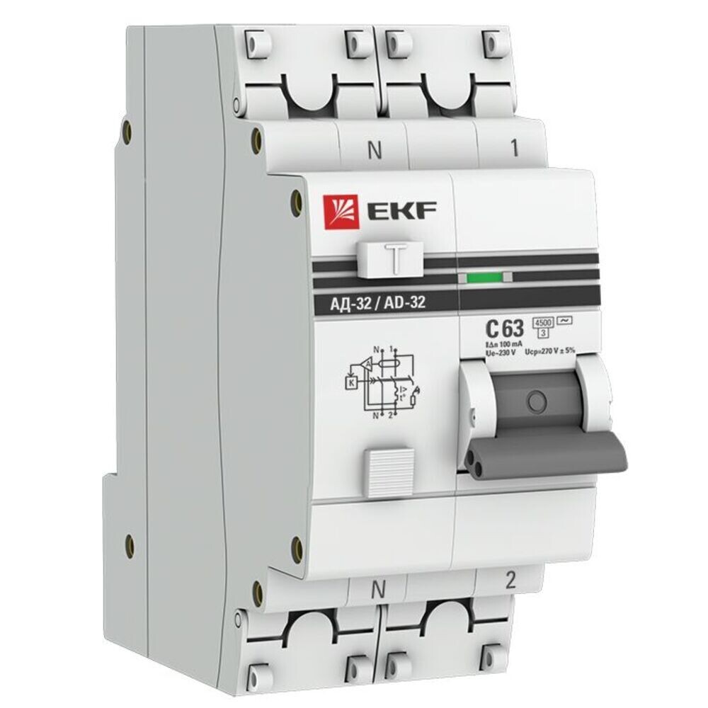 Автомат дифференциальный EKF PROxima АД-32 63А 1P+N тип AC 100 мА 4,5 кА (DA32-63-100-pro)