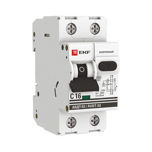 Автомат дифференциальный EKF PROxima АВДТ-63 16А 1P+N тип A 30 мА 6 кА (DA63-16-30e)