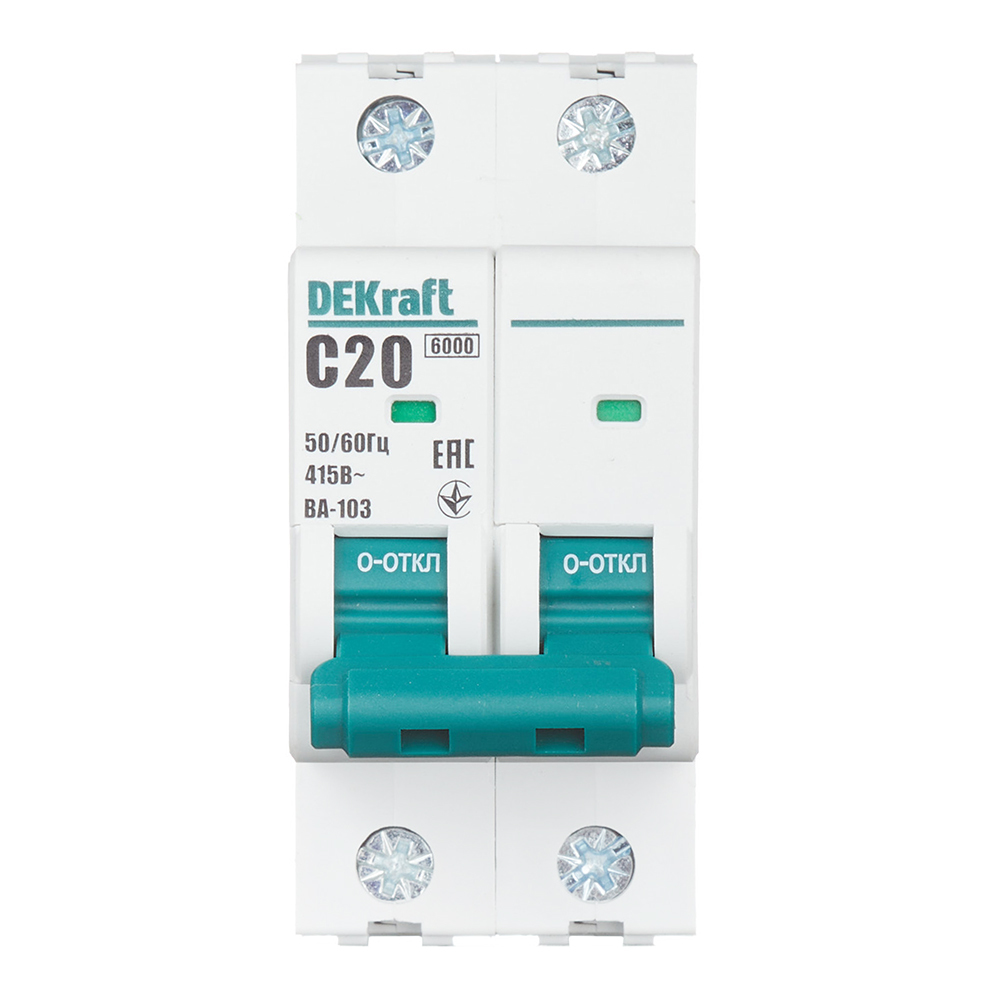 Автоматический выключатель модульный Dekraft BA-103 2P 20А тип C 6 кА 230/400 В (12290DEK)