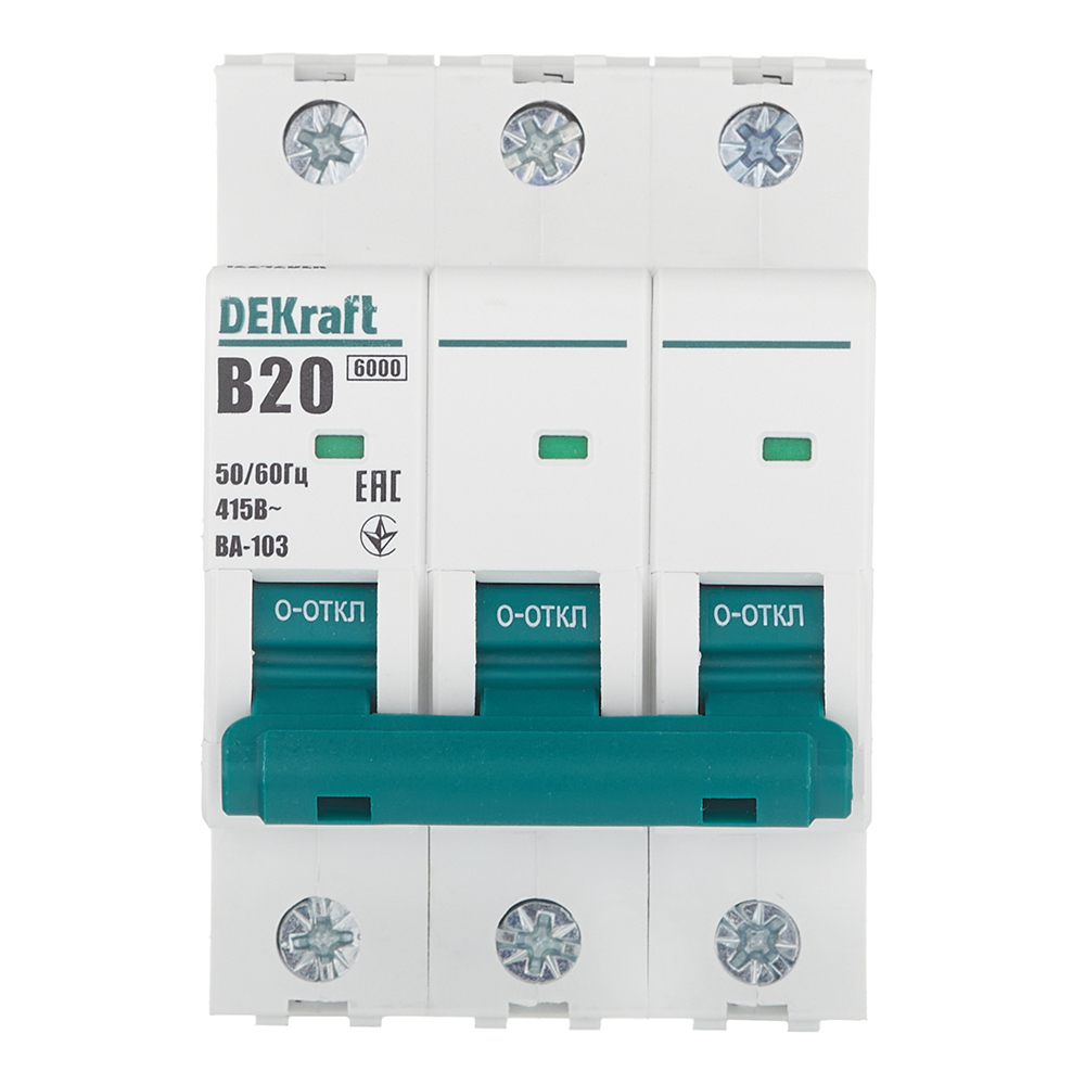 Автоматический выключатель модульный Dekraft BA-103 3P 20А тип B 6 кА 230/400 В (12242DEK)