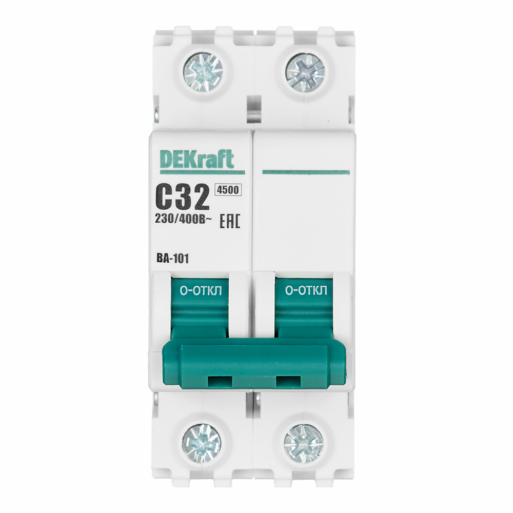 Автоматический выключатель модульный Dekraft ВА-101 2P 32А тип C 4,5 кА 220 В (11069DEK)
