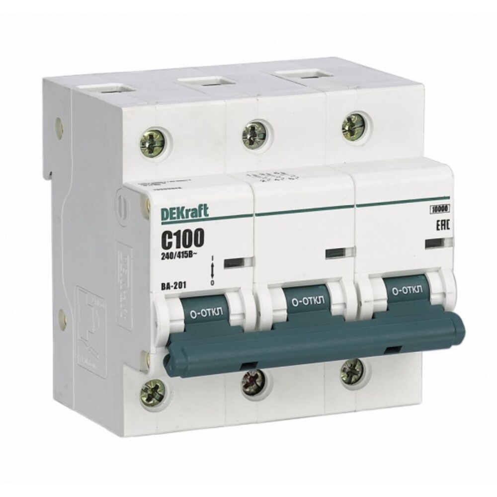 Автоматический выключатель модульный Dekraft ВА-201 3P 125А тип C 10 кА 400 В (13027DEK)