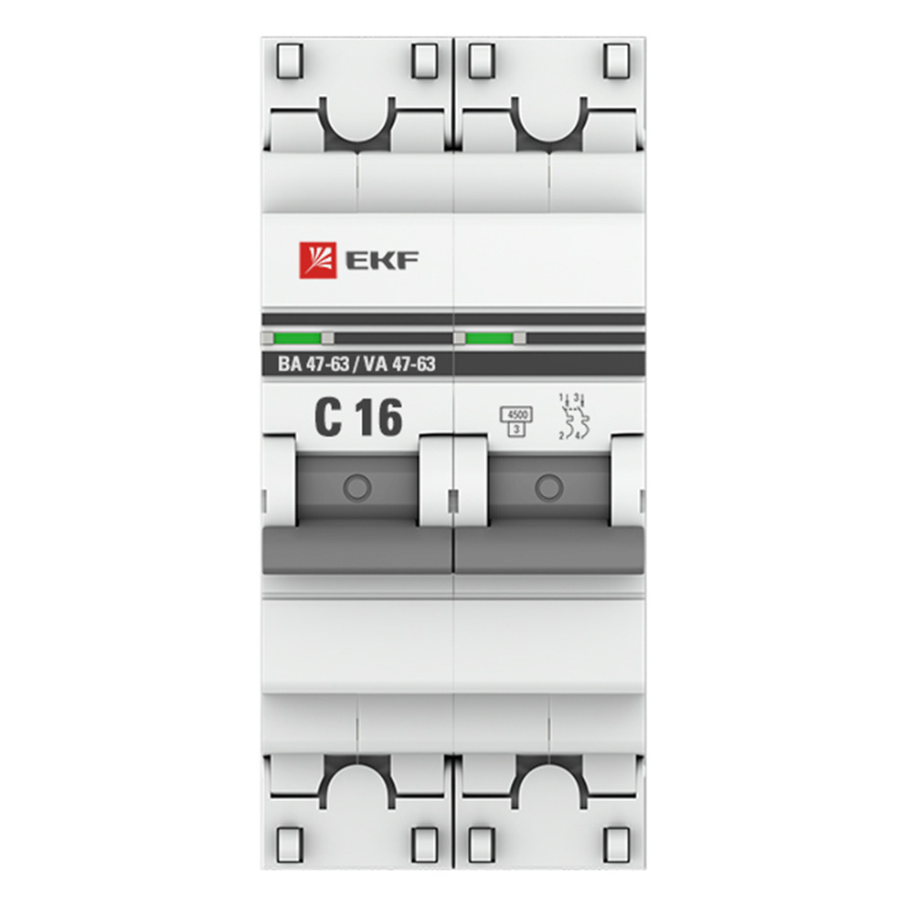 Автоматический выключатель модульный EKF PROxima ВА 47-63 2Р 16А тип C 4,5 кА 230 В (mcb4763-2-16C-pro)