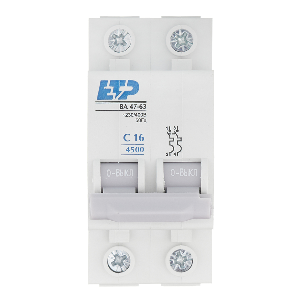 Автоматический выключатель модульный ETP ВА 47-63 2P 16А тип C 4,5 кА 230/400 В (11217)