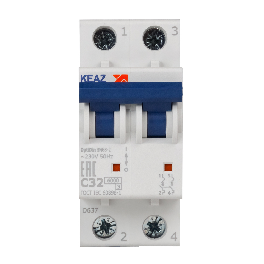 Автоматический выключатель модульный КЭАЗ OptiDin 2P 32А тип C 6 кА 220 В (260604)
