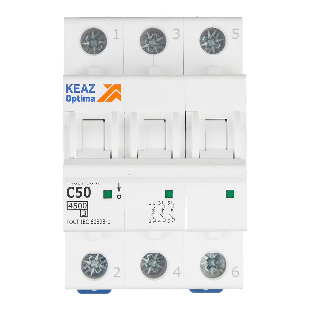 Автоматический выключатель модульный КЭАЗ OptiDin BM63 3P 50А тип C 4,5 кА 230/400 В (326817)