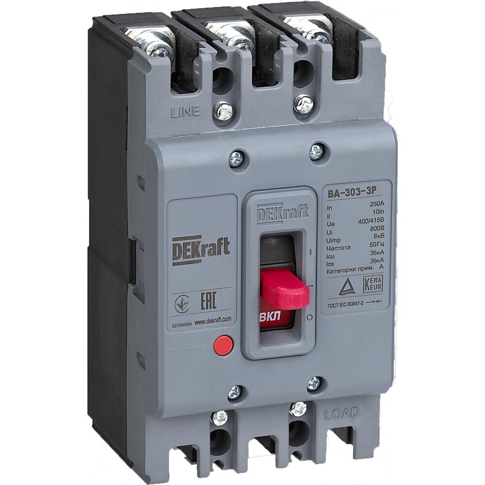 Автоматический выключатель в литом корпусе Dekraft ВА-303 3P 160А тип D 36 кА 230 В (22752DEK)
