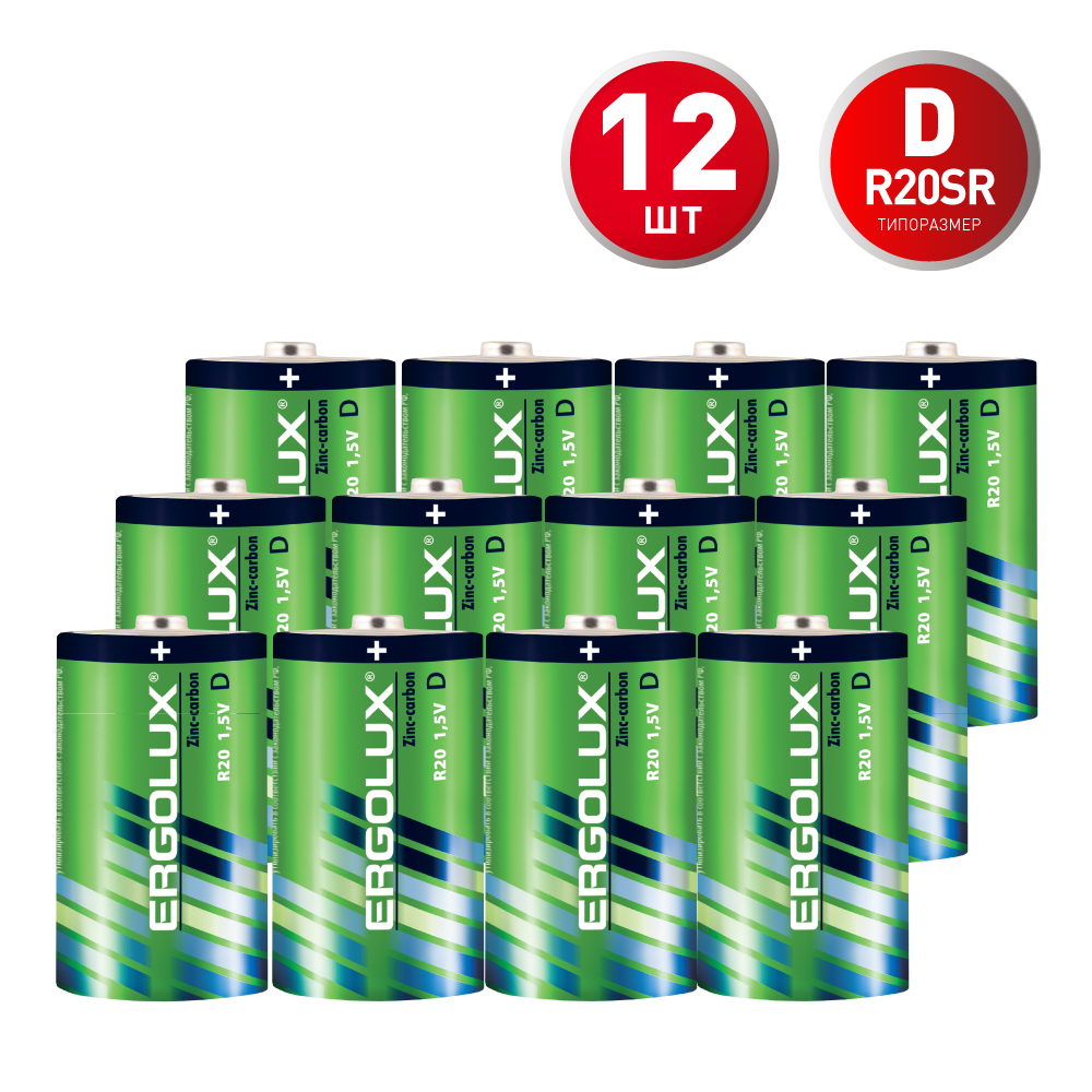 Батарейка Ergolux D R20 1,5 В (12 шт.) (R20SR2)