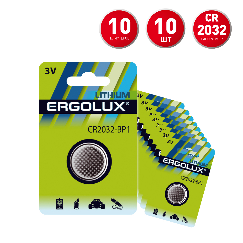 Батарейка Ergolux таблетка CR2032 3 В (10 шт.) (CR2032-BP1)