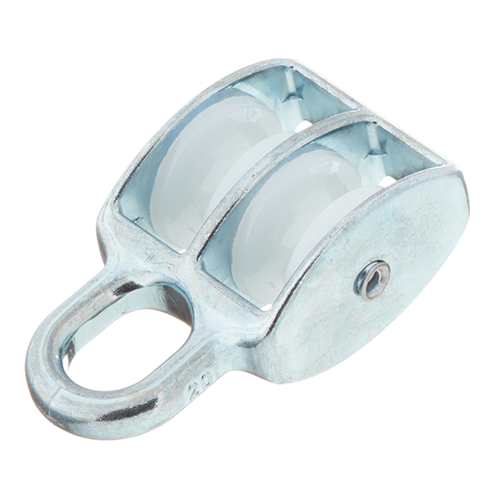 Предназначен для изменения направления движения груза, а также для его перемещения, используется совместно с тросом диаметром от 2 до 6 мм. Блок имеет два ролика, что позволяет использовать одновременно два троса. Не предназначен для ударных нагрузок. Широко применяется в монтажных, строительных и такелажных работах.