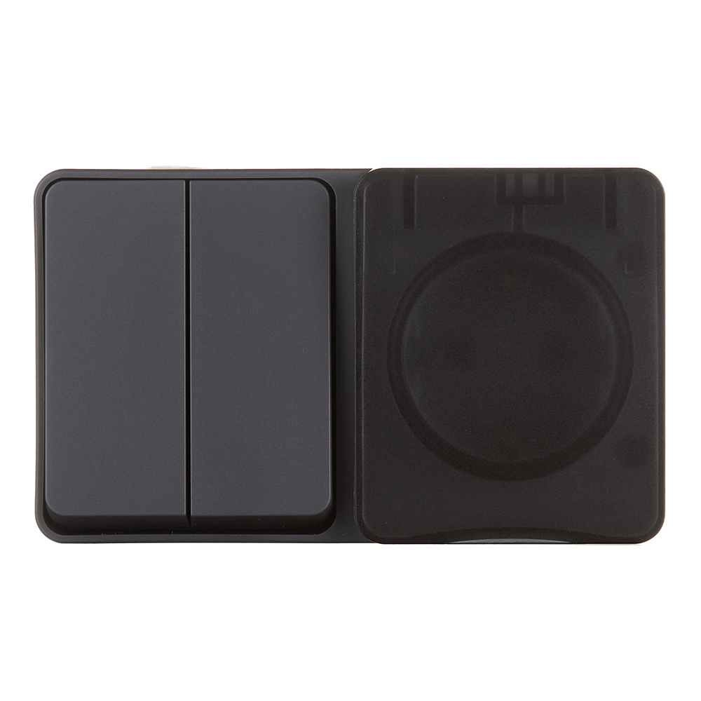Блок выключатель и розетка Systeme Electric AtlasDesign Profi54 двухклавишный накладной антрацит (ATN544074)