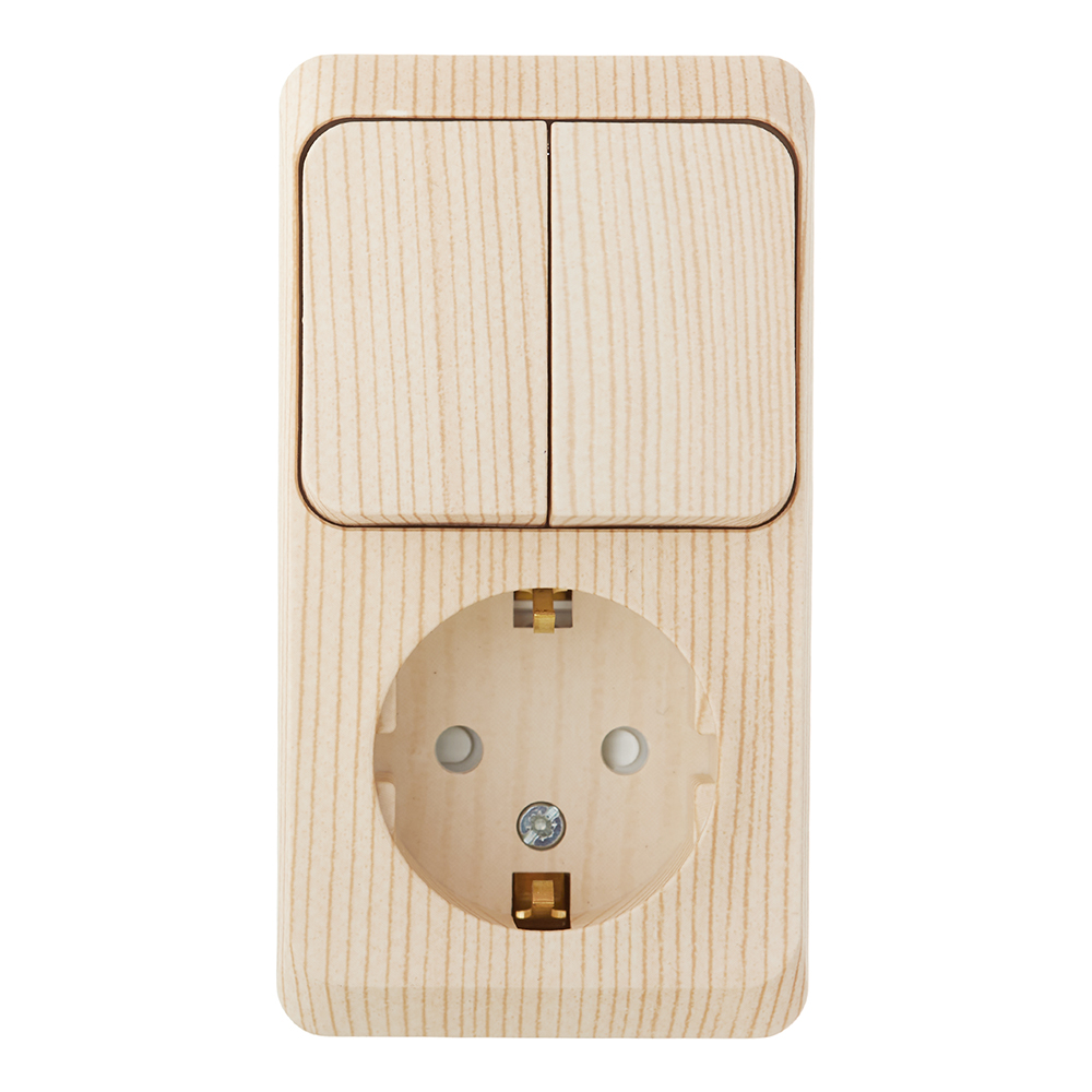 Блок выключатель и розетка Systeme Electric Этюд двухклавишный накладной сосна (BPA16-202D)