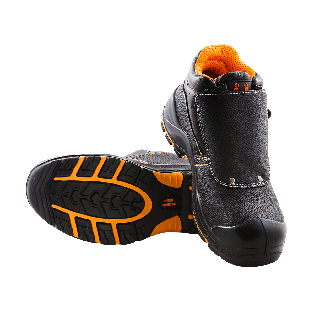 Ботинки «Сварщика» отлично подойдут для использования при сварочных работах. Обувь изготовлена методом прямого литья. Защитный кожаный клапан защищает шнуровку и фиксируется ремешком с пряжкой. Носок из поликарбоната обеспечивает защиту от ударов в носочной части 200 Дж и проколов.