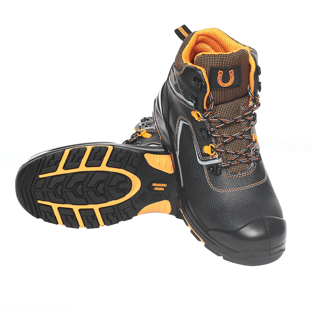 Ботинки рабочие подойдут для использования в строительстве, нефтегазовой, химической промышленности, металлургии и многих других. Обувь изготовлена методом прямого литья. Носок из поликарбоната обеспечивает защиту от ударов в носочной части 200 Дж и проколов. Материал верха ботинок термостойкая водоотталкивающая кожа толщиной 1,8 — 2 мм, с специальным покрытием, защищает от контактов с агрессивной средой: нефть, растворы кислот и щелочной концентрации до 20%, общих производственных загрязнений. Подошва двухслойная, полиуретан и нитрильная резина, устойчива к контакту с нагретой поверхностью, до 300 градусов Цельсия, с улучшенным сопротивлением к скольжению и деформациям. Подкладка Tipica прочный, устойчивый к стиранию, воздухопроницаемый и легкий материал, обеспечивает комфортную и долгую носку. Антипрокольная стелька из кевлара обезопасит стопу ноги от порезов и проколов. Светоотражающие элементы делают Вашу работу безопасной в темное время суток.