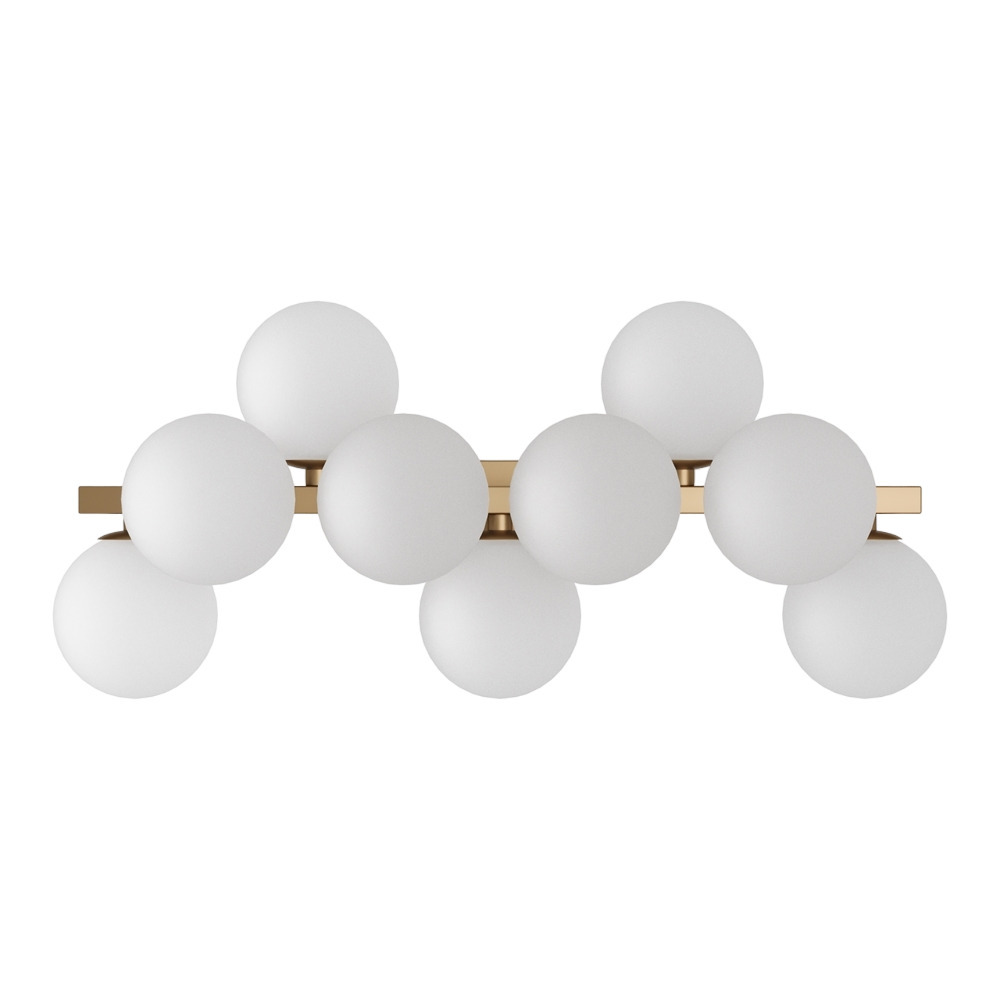 Масштабные скульптурные композиции, образованные многочисленными шарами из выдувного стекла, формируют неповторимый облик светильников серии. На полированных металлических ветвях установлены тонированные плафоны, которые мягко рассеивают и приглушают свет ламп. Модели серии представлены в трех цветах — золото, хром и латунь. Высота подвесных светильников регулируется длиной троса. Серия представлена потолочными, подвесными светильниками, и бра.