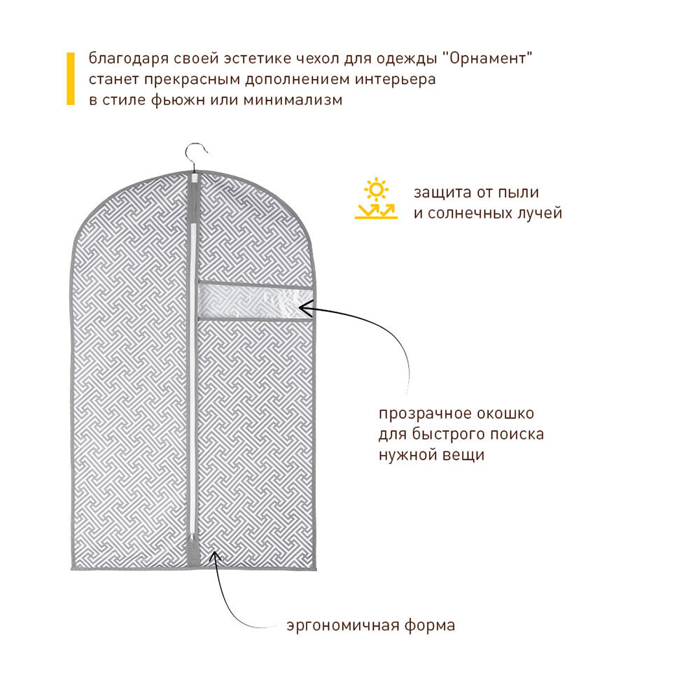 Чехол для одежды Орнамент 1000х600 мм серый