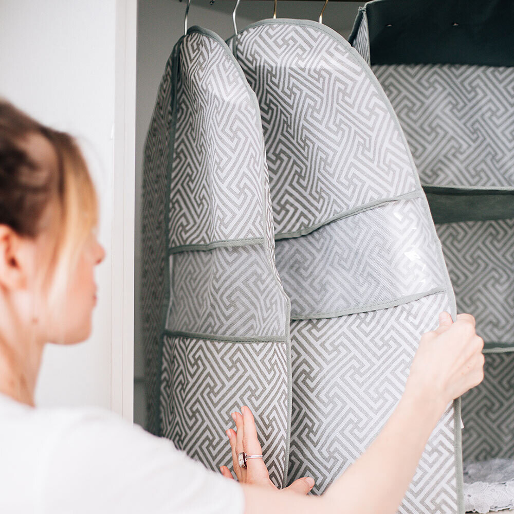 Чехол для одежды из нетканого материала идеально подойдет для бережного хранения вещей на вешалке.
