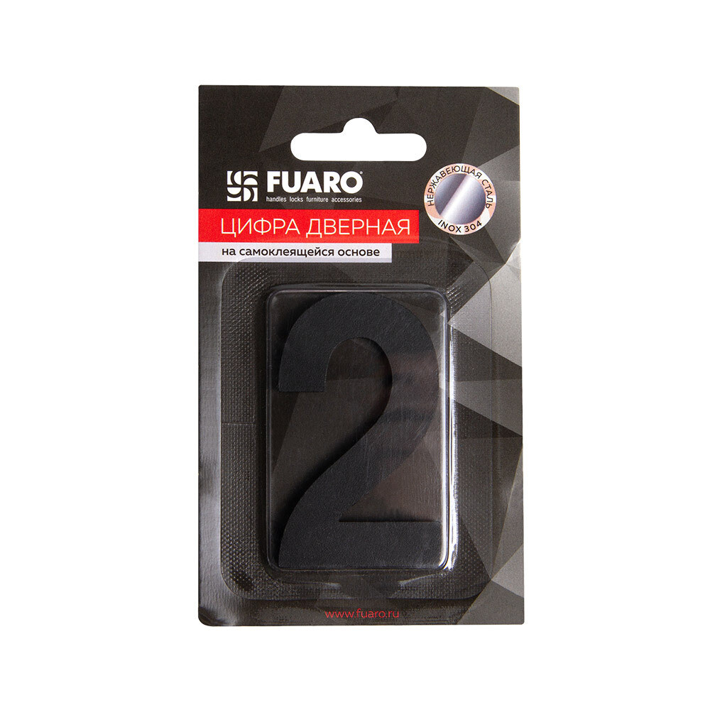 Цифра самоклеящаяся 2 Fuaro SS304 50х30 мм черная