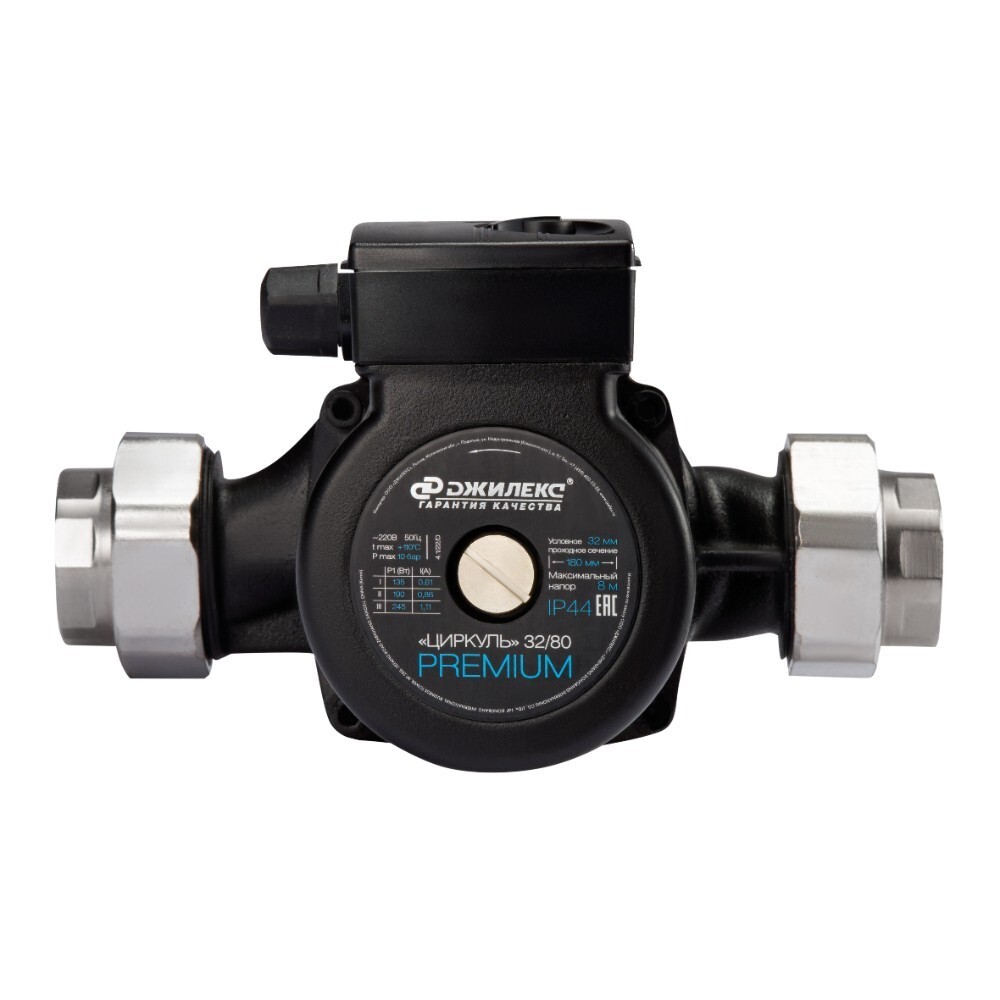 Циркуляционный насос для систем отопления Джилекс Циркуль 32/80 Premium DN25 подъем 8 м 180 мм с гайками (3281)