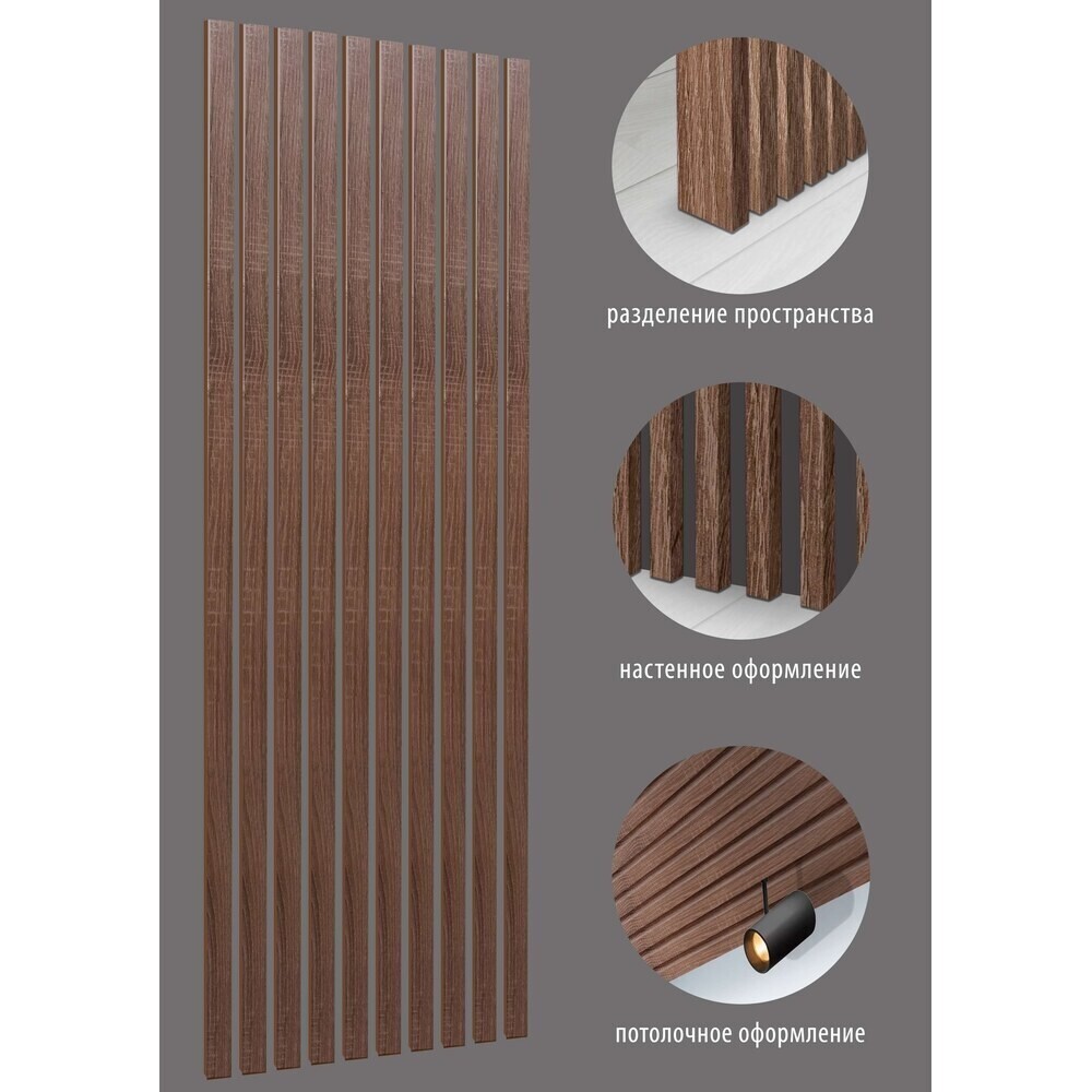 Интерьерная рейка изготовлена из МДФ, покрыта износостойкой пленкой. Применяется для создания реечных потолков, реечных перегородок, реечных стен в интерьерах, для зонирования и в декоративных целях.