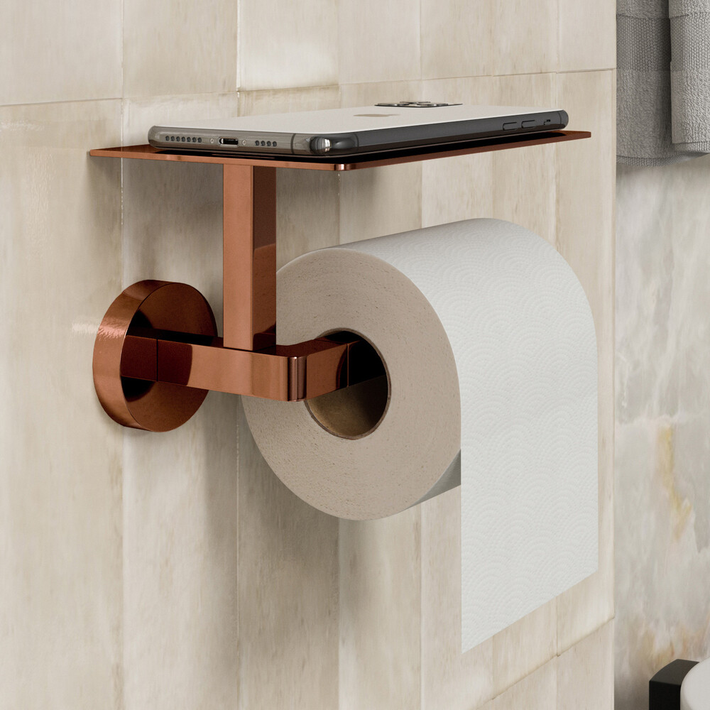 Держатель для туалетной бумаги WasserKraft с полкой металл золото (K-77725)