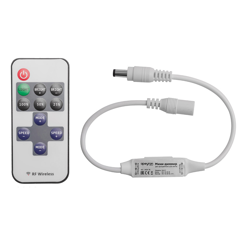 Диммер для светодиодной ленты 12/24 В 72 Вт IP20 Apeyron с пультом (04-10)
