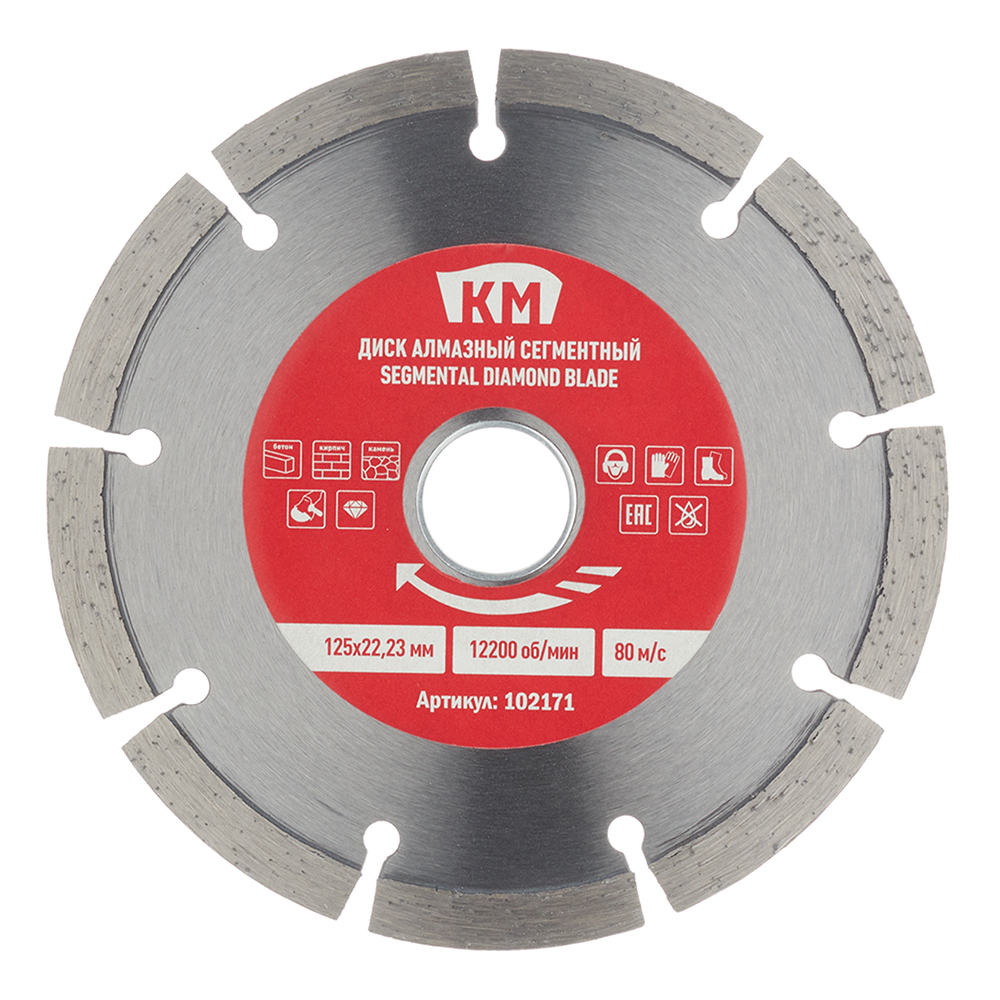 Диск алмазный по бетону КМ 125х22,2х2 мм сегментный сухой рез СТМ