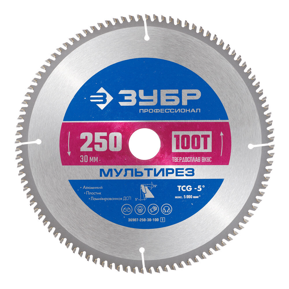 Диск пильный по алюминию Зубр 250х30х2 мм 100 зубьев (36907-250-30-100_z01)