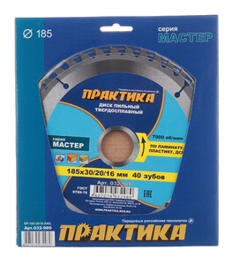 Диск пильный по ламинату Практика 185х30/20/16х2,8 мм 40 зубьев (032-980)