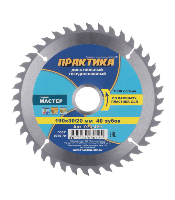 Диск пильный по ламинату Практика 190х30/20х2,8 мм 40 зубьев (030-429)