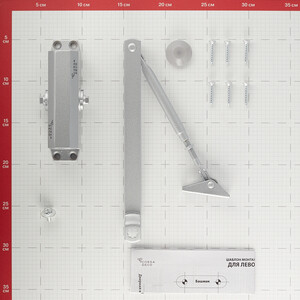 Комплектность: доводчик, рычаг, декоративная заглушка, комплект крепежа
