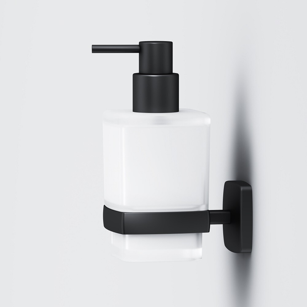 Стильная коллекция Gem в черном цвете превращает даже простые аксессуары для ванной комнаты в классные дизайнерские детали. Форма аксессуаров Gem повторяет линии смесителей коллекции, подчеркивая единую концепцию дизайна. Диспенсер для мыла изготовлен из цинка и закаленного матового стекла. Матовая поверхность предотвращает появление следов от капель воды, сохраняя поверхность чистой на много дольше.