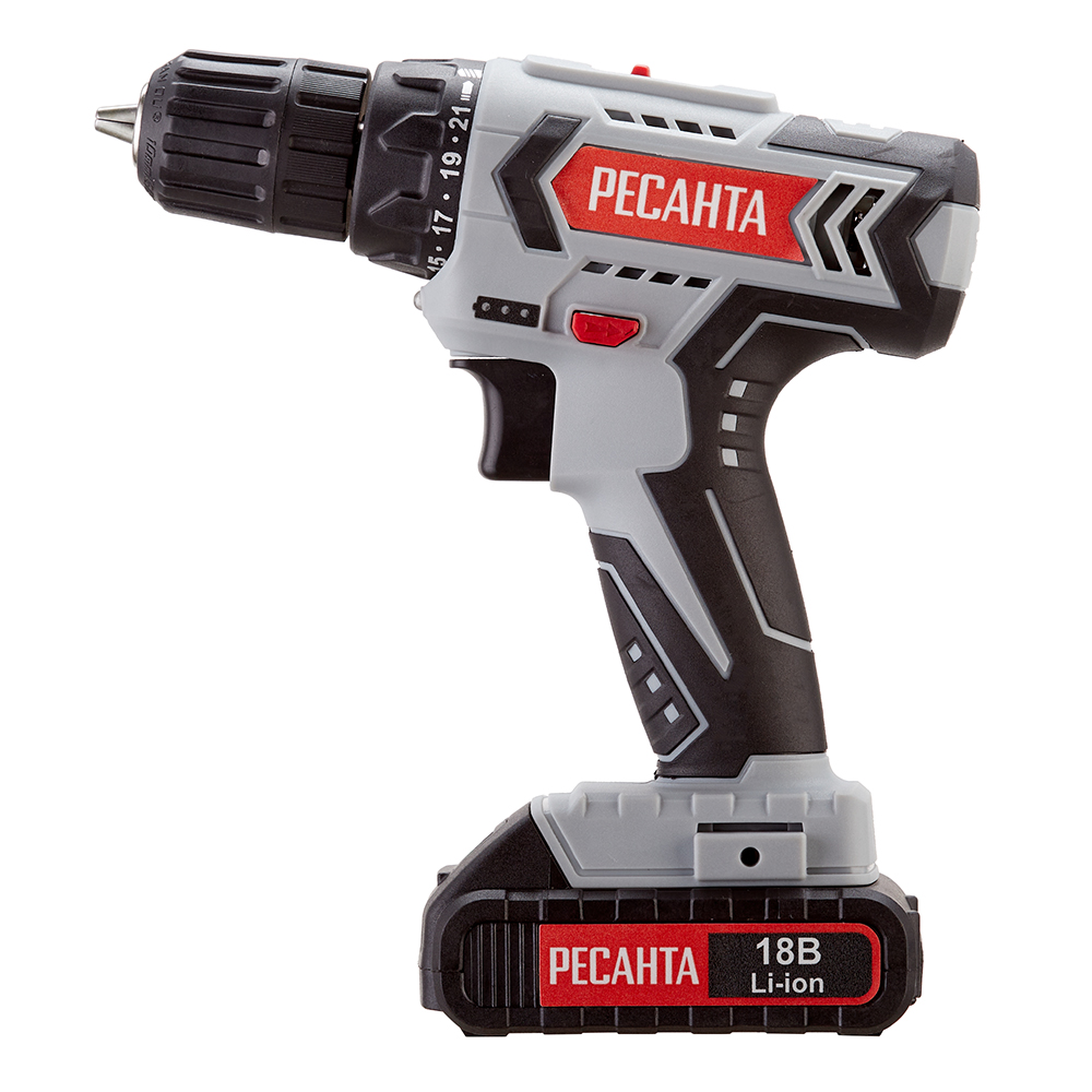 Дрель-шуруповерт аккумуляторная Ресанта ДА-18-2ЛК 18 В 2 Ач Li-Ion 2 АКБ иЗУ (75/14/5)
