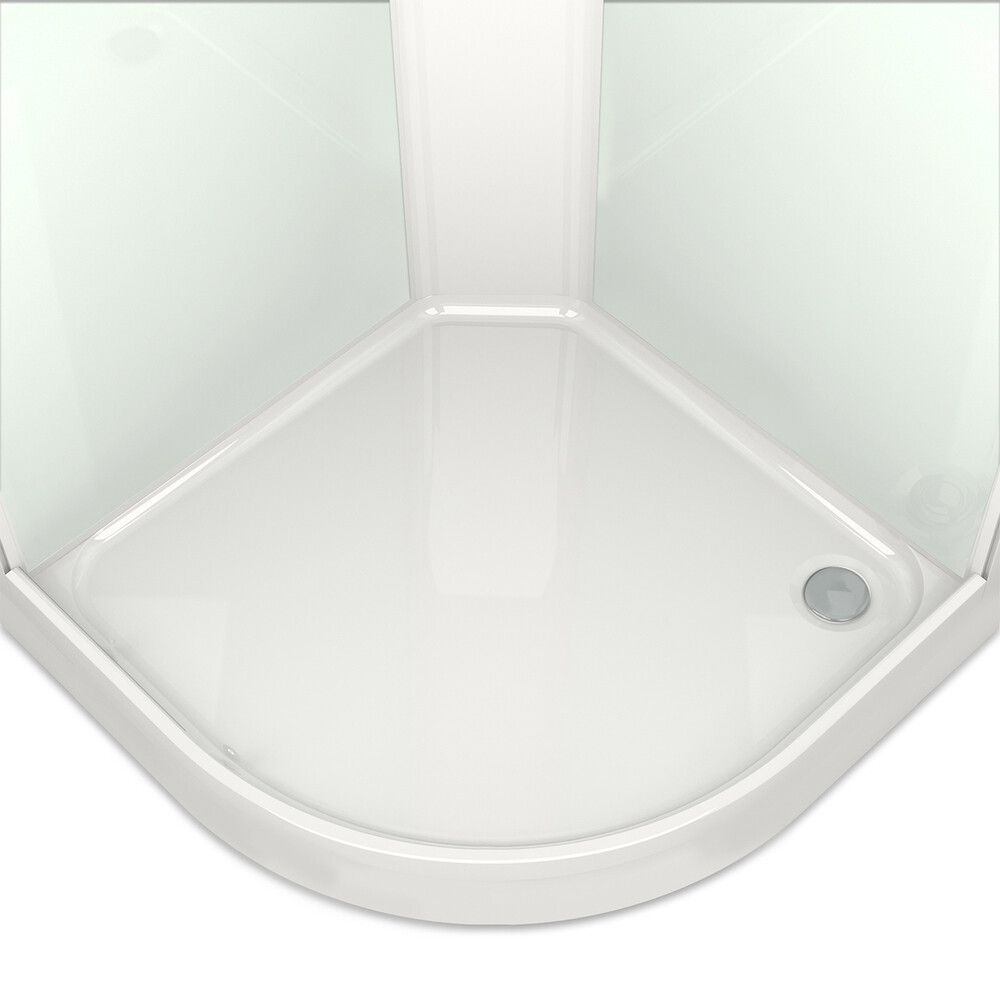 Душевая кабина с низким поддоном, белыми стенками и матовым стеклом. Кабина закрытого типа с крышей. Данная модель сочетает в себе высокие эксплуатационные характеристики, стильный дизайн и доступную цену. С целью достижения увеличенной жесткости конструкции горизонтальный профиль ложится на бортик поддона (а не рядом с бортиком) и не имеет движения по поддону, а отсутствие зазора между профилем и бортиком поддона препятствует скоплению грязи. Установка такой душевой кабины не займет много времени и сил.