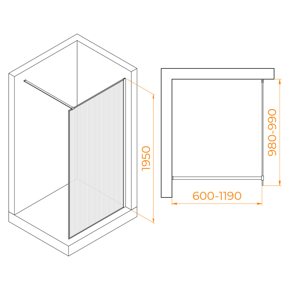 Душевая перегородка RGW WA 08 хром 100х195 см стекло рифленое 8 мм