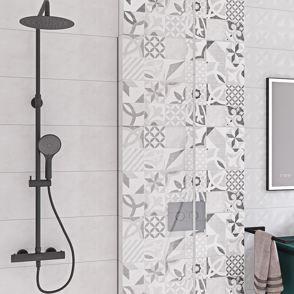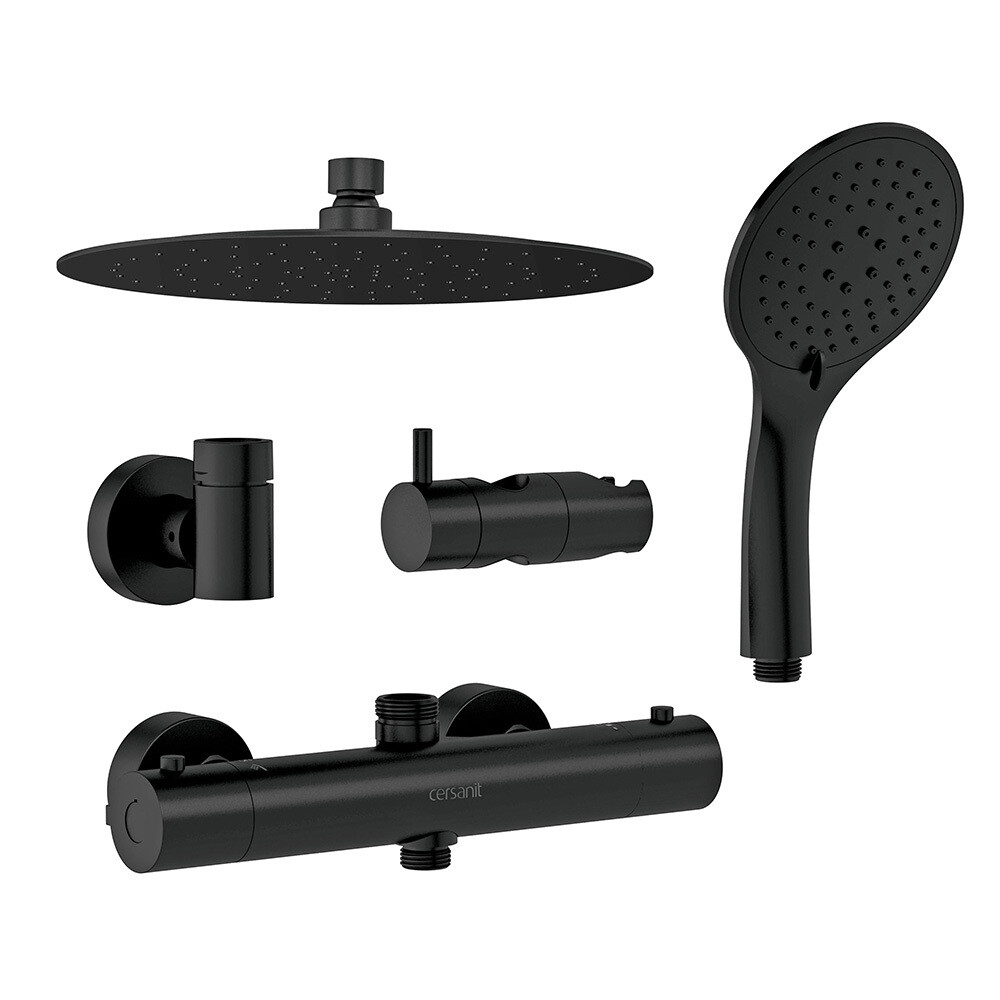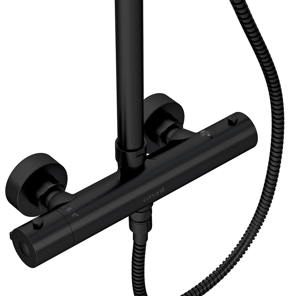 Душевая система Cersanit Brasko Black с верхним душем с лейкой с термостатом черная (63112)