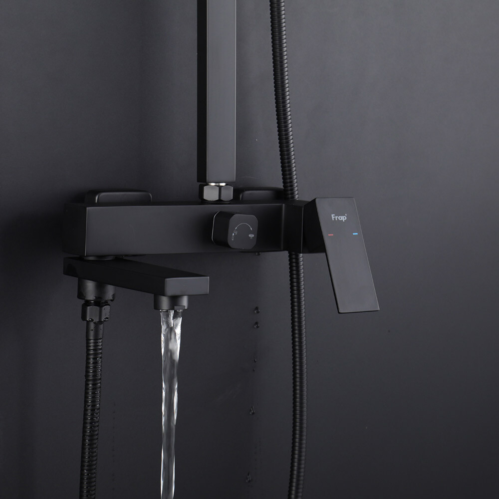 Душевая система Frap с верхним душем с лейкой со смесителем черная (F24802-16)