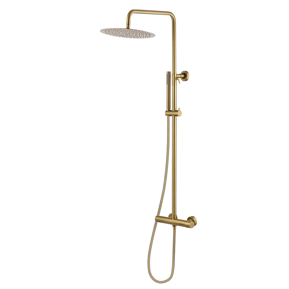 Душевая система Swedbe Select с верхним душем с лейкой с термостатом золото (2791GO)