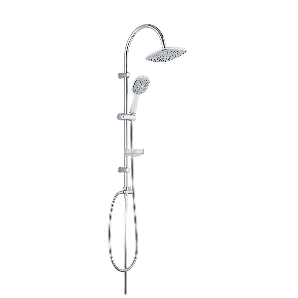 Комплектация: стойка для душа, лейка ручного душа, лейка верхнего душа, душевой шланг — 1500 мм, душевой шланг 800 мм.