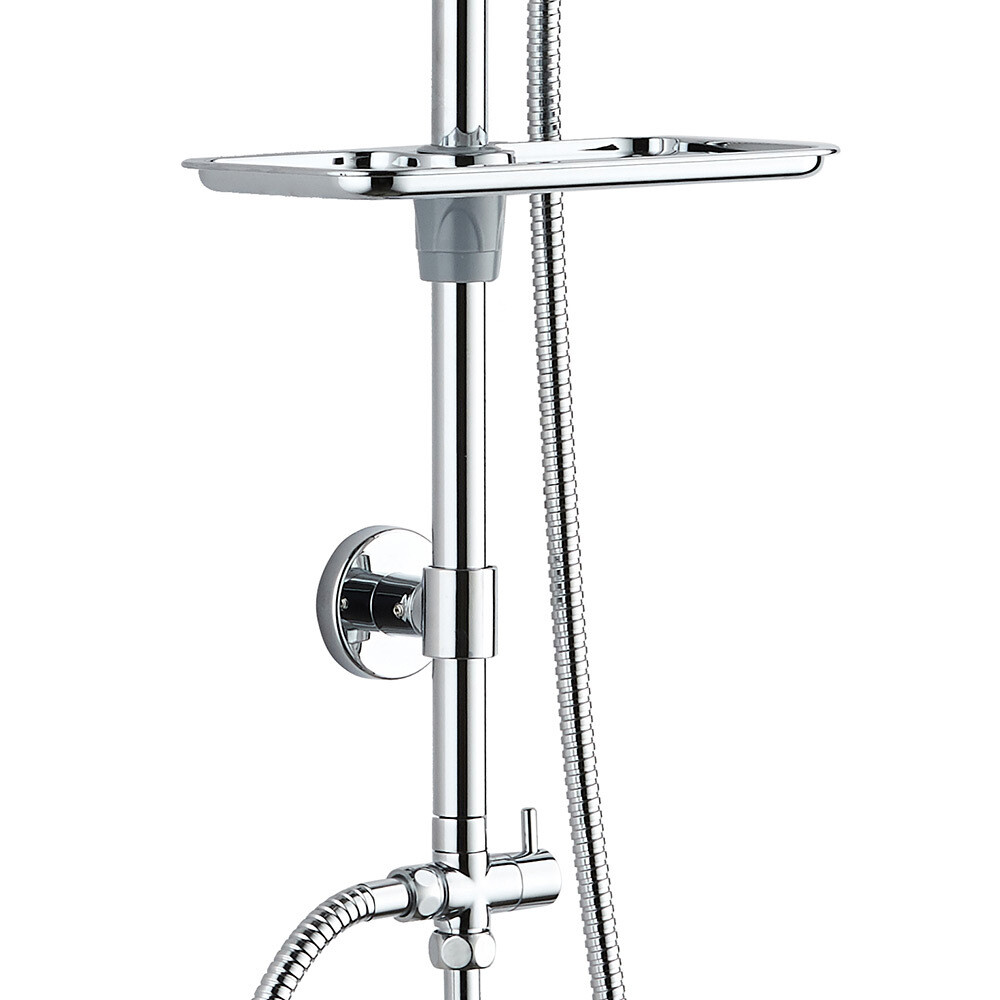 Душевой комплект с верхним душем и мыльницей цвета хром сочетает в себе современный дизайн и высокое качество.